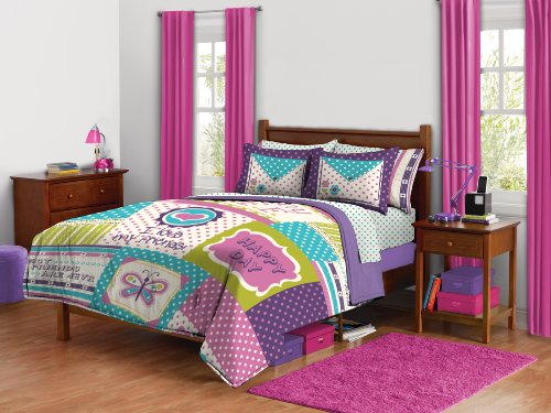 SShape your perfect space with these Dream Diary Comforter Sets, showcasing beautiful patchwork with positive messages in the designs on a colorful background. Update any bedroom with this cool, fashion-forward comforter set. The full set includes: 76-inch by 86-inch comforter and two 20-inch by 26-inch shams.
