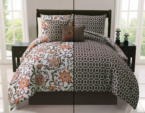 Victoria Classics Calista 5-Piece Reversible Comforter Set, Queen, Brown Feature