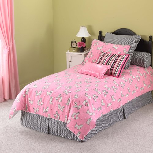 - This twin size bedding features a cotton candy pink color fabric with poodle print comforter.
