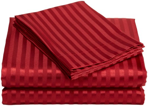 Divatex Home Fashions Royal Opulence Woven Satin Stripe Queen Sheet Set, Red Feature